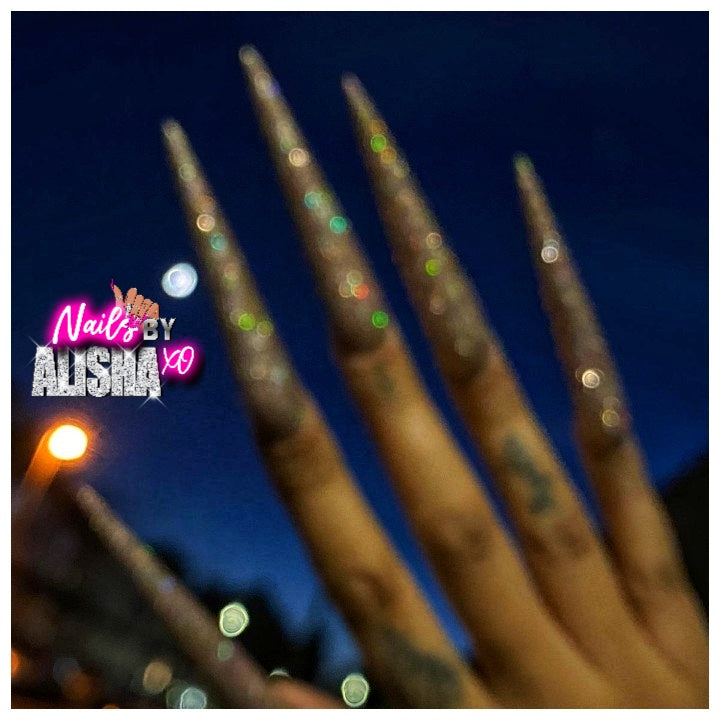 Get ready to add some sparkle to your nail game! Simply apply top coat, sprinkle glitter on top, and cure for a fabulous look. Suitable for clear acrylic or builder gel mixing, or as sugaring. Order now and don't forget to tag @nailsbyalishaxo!